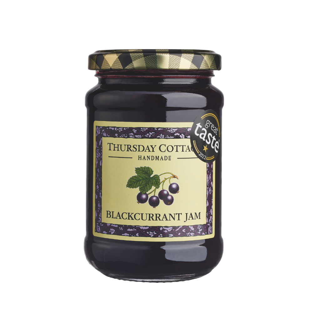 Delightfully dark and moody colour, with a gorgeous contrasting shine on this jam. Sweet ripe fruit on the nose, and lots of visible currants. The flavour is delicious, with a good level of astringency, and then the blackcurrants coming through giving all their flavour, and the jelly set is just right to project these flavours well.