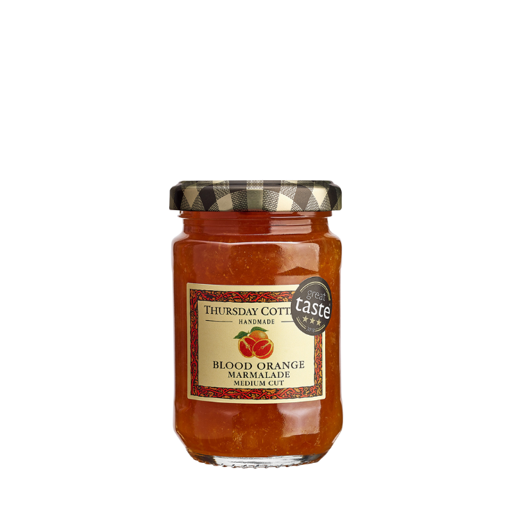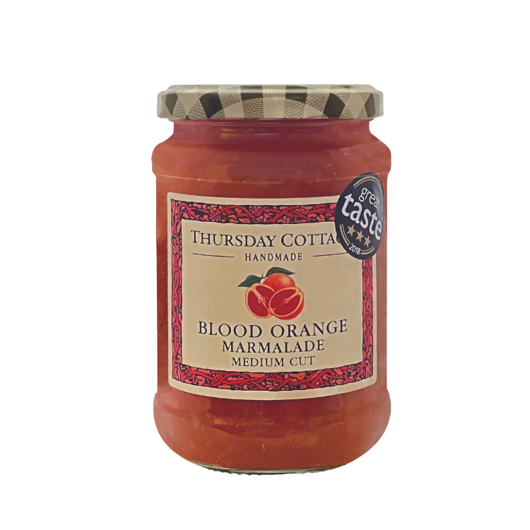 Citrus fruit with dark pigments is unusual and our blood oranges come from the slopes of Mount Etna in Sicily. The local growers claim Etna citrus is the best in the world. The result is a richly flavoured medium cut crimson marmalade.