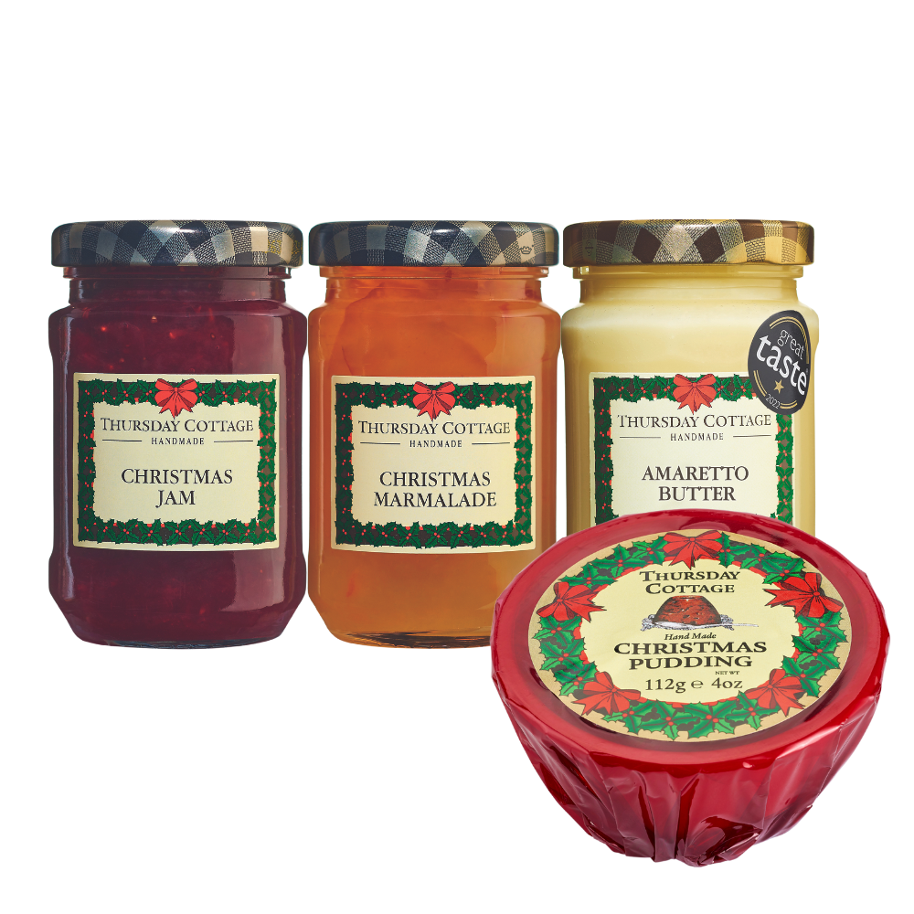 Perfect for gifting or enjoying yourself. Contains: Christmas Jam, Christmas Marmalade, Amaretto Butter and a individual Christmas Pudding.